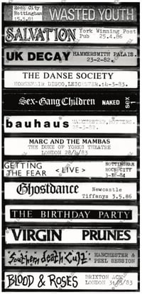 These images were captured by Chris of a selection of some of the many live tapes he collected through the early eighties, some of which he recorded himself ...if he didn't take his camera to a gig he'd quite often take his tape recorder instead.